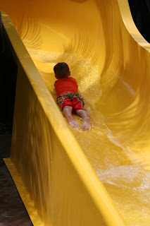We went two rounds on the lazy river. Alaina with Andrew on her lap, me with Addi on mine, and after a little convincing, Drew got Trevor to go with him. McKenzie and Katelyn were each on their own tube. It was a nice relaxing 'ride', and Addi and I managed to dodge the small waterfall both times around, so we didn't get too wet.