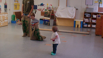 Then we went to God's Snack Shack for fruit and water. Before we knew it we were off to the potato sack races, which was Trevor's favorite event. (Addison's too)